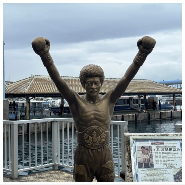 意を決して10:10に部屋を出て、ホテルの傘を借りてとりあえず離島ターミナルに行き、具志堅さんに挨拶しておく。